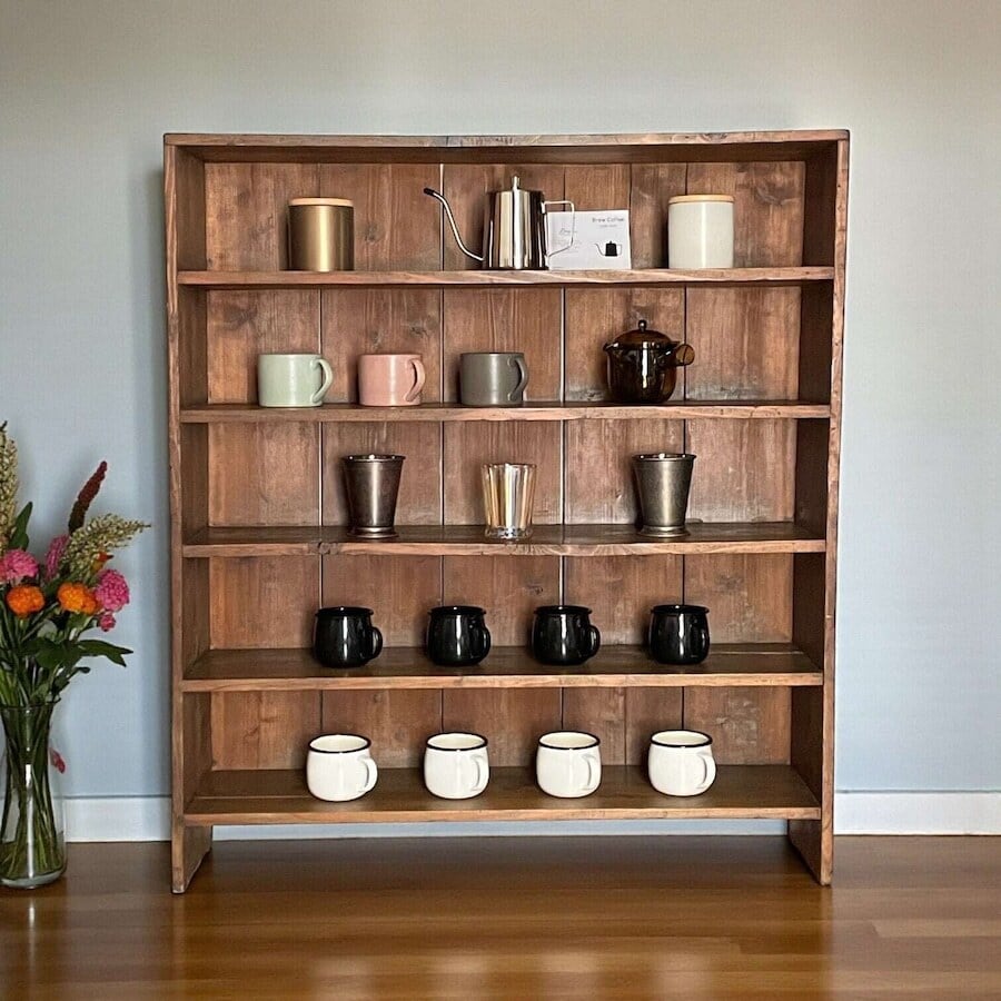 木製ラックラックにお気に入りのカップや雑貨、道具を並べるだけで「キレイな装飾」に変わります。
