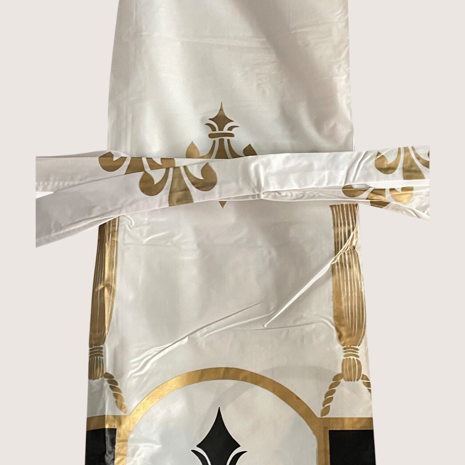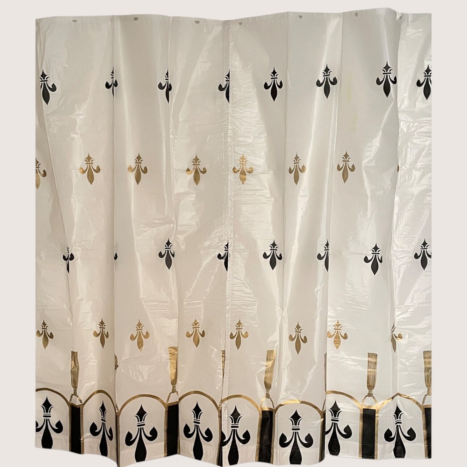 クラシカルな模様が映える、ゴールドのビニールカーテン2枚セットです。