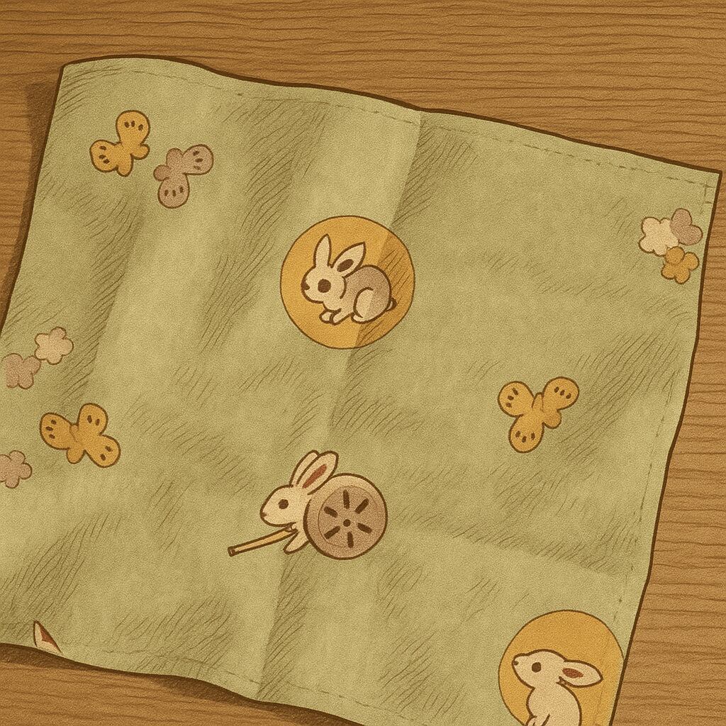 やさしいグリーン地にうさぎ柄が描かれた、風情ある綿100%の風呂敷です。