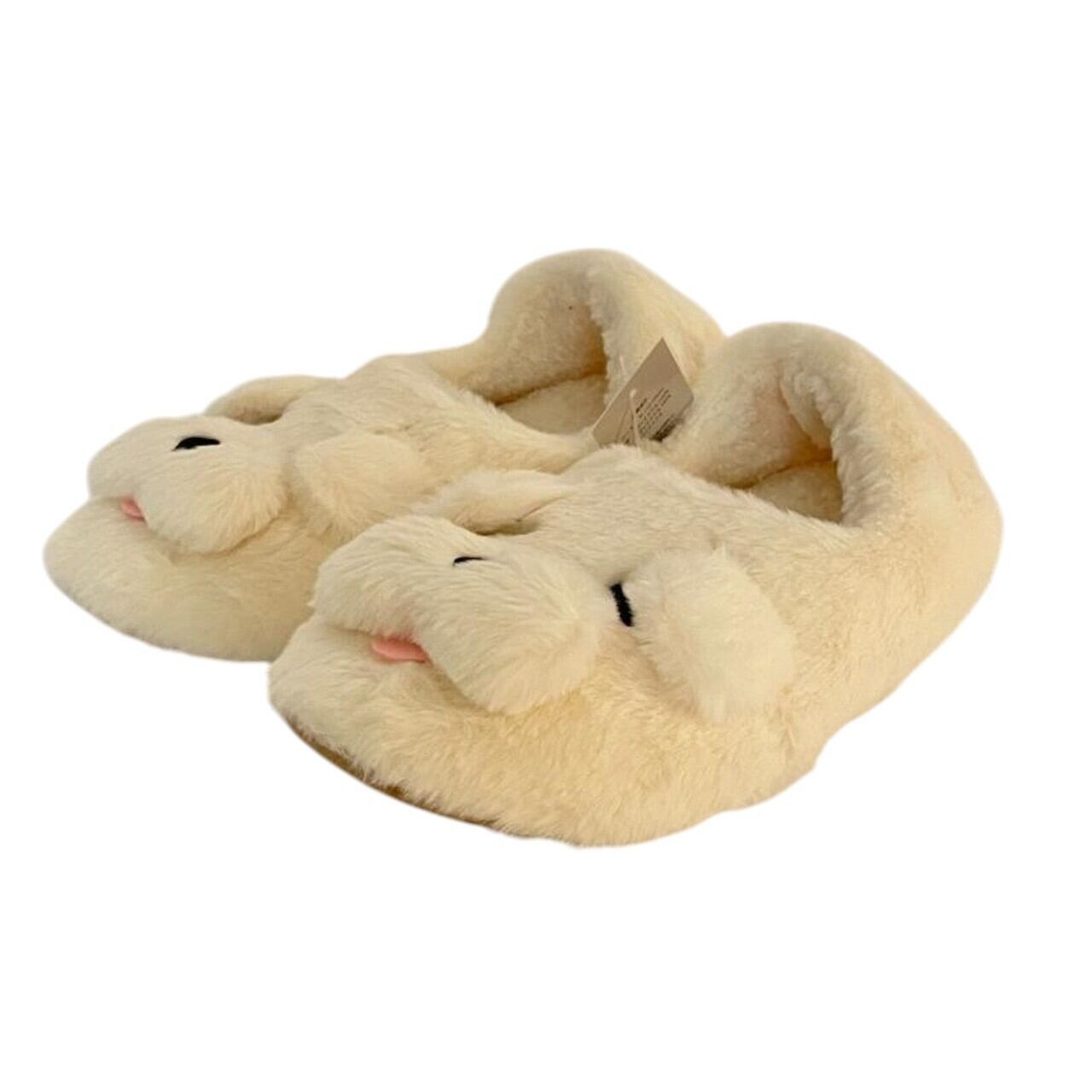 ふわふわ素材で足元をやさしく包み込む犬モチーフの癒し系スリッパ。