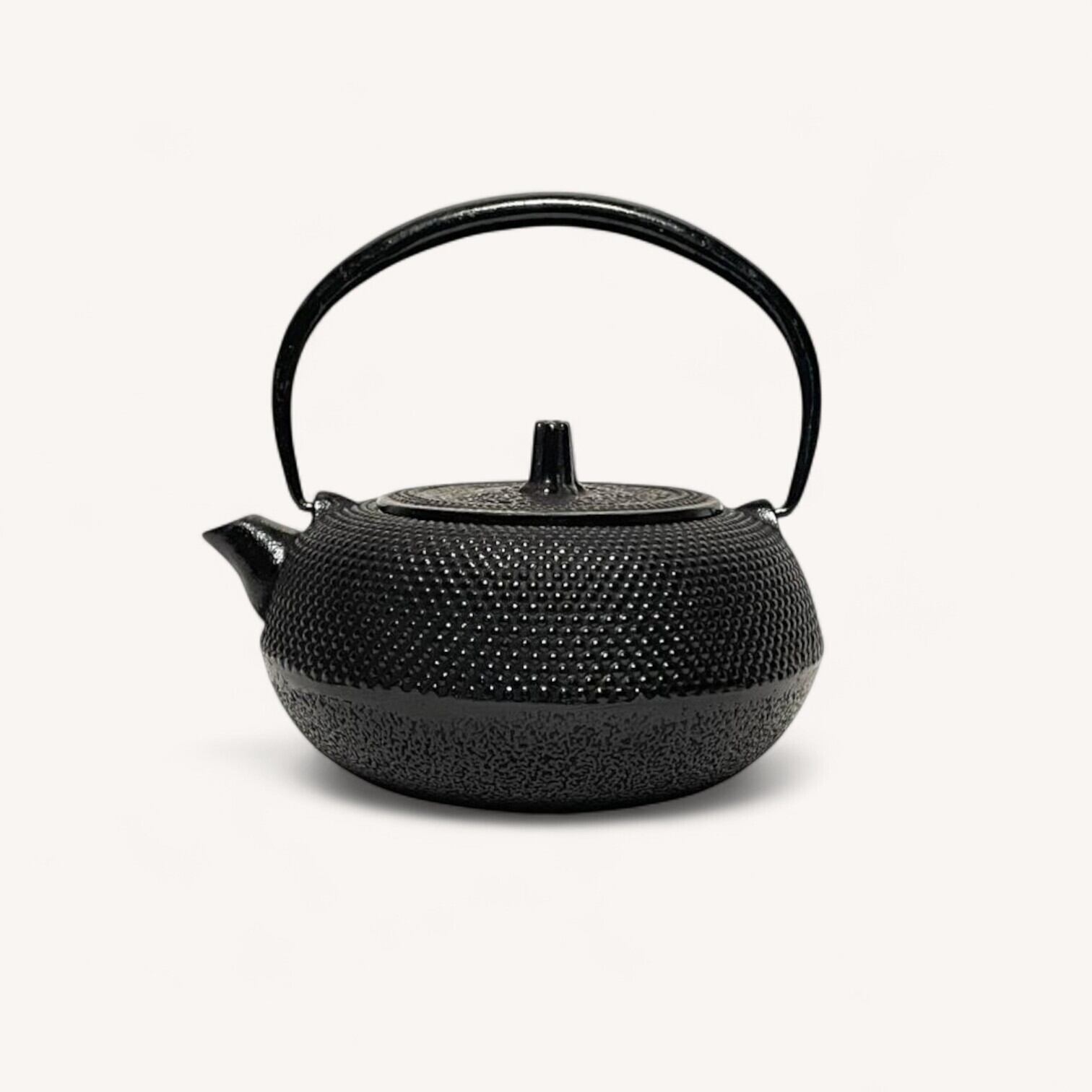 落ち着いた黒の佇まいが美しい、松雲堂の鉄瓶。