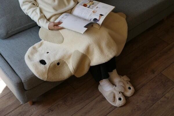 やさしい色合いとイヌの表情に癒される、ふんわりブランケットです♬