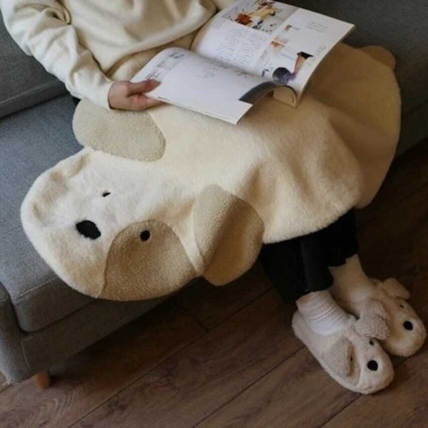 落ち着いた色味と可愛いイヌのイラストが癒しをくれるブランケット。