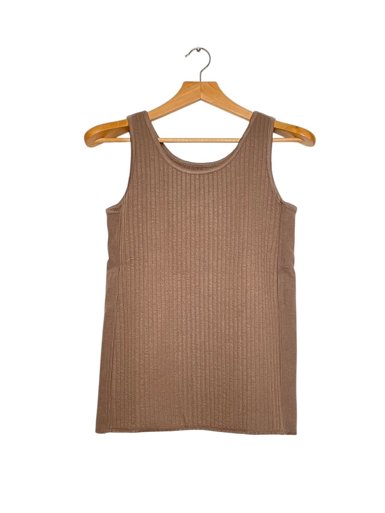ふっくらとした縦キルティング素材が魅力のタンクトップ。