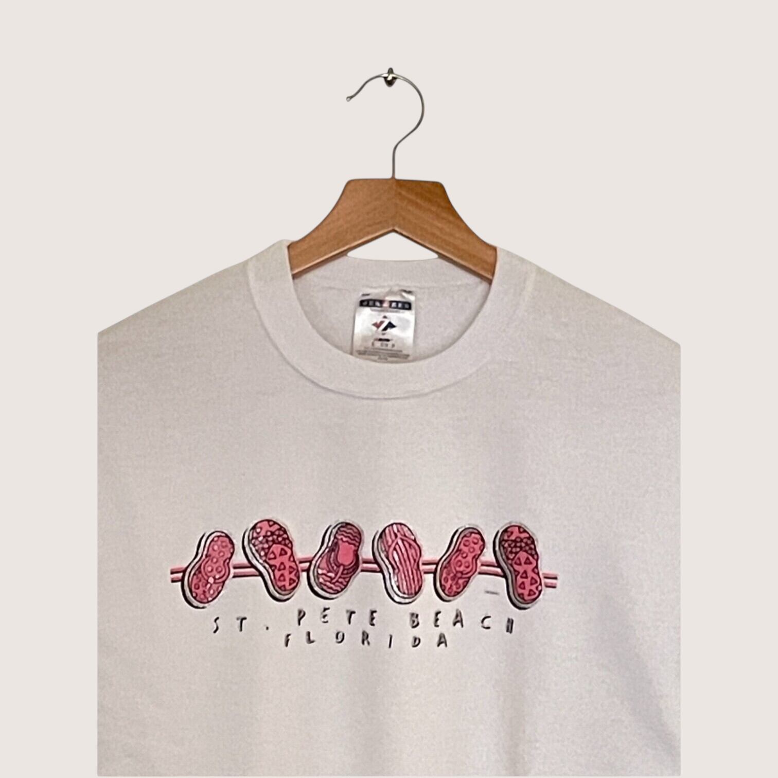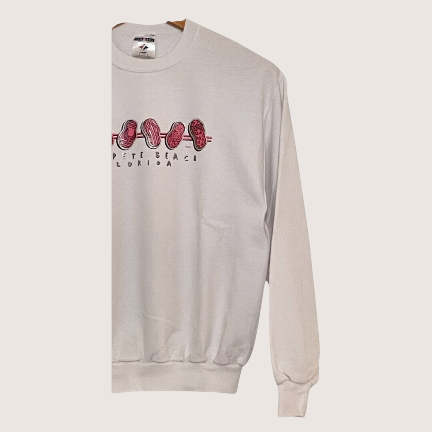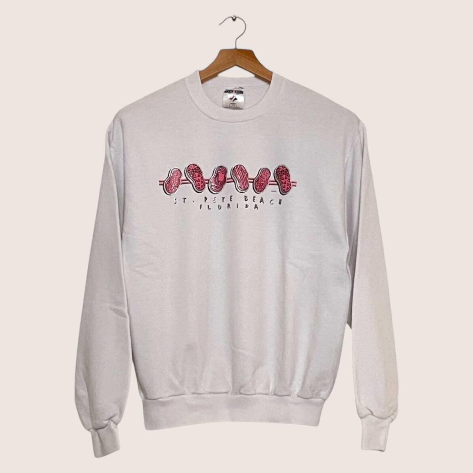 ビーチサンダルのプリントが目を引くスウェットです。