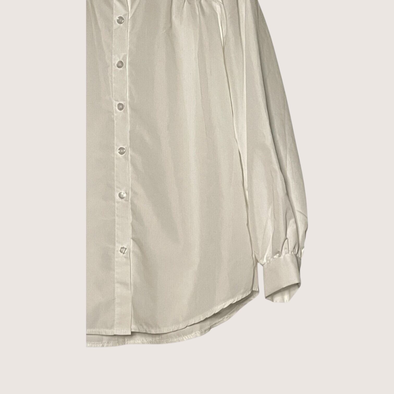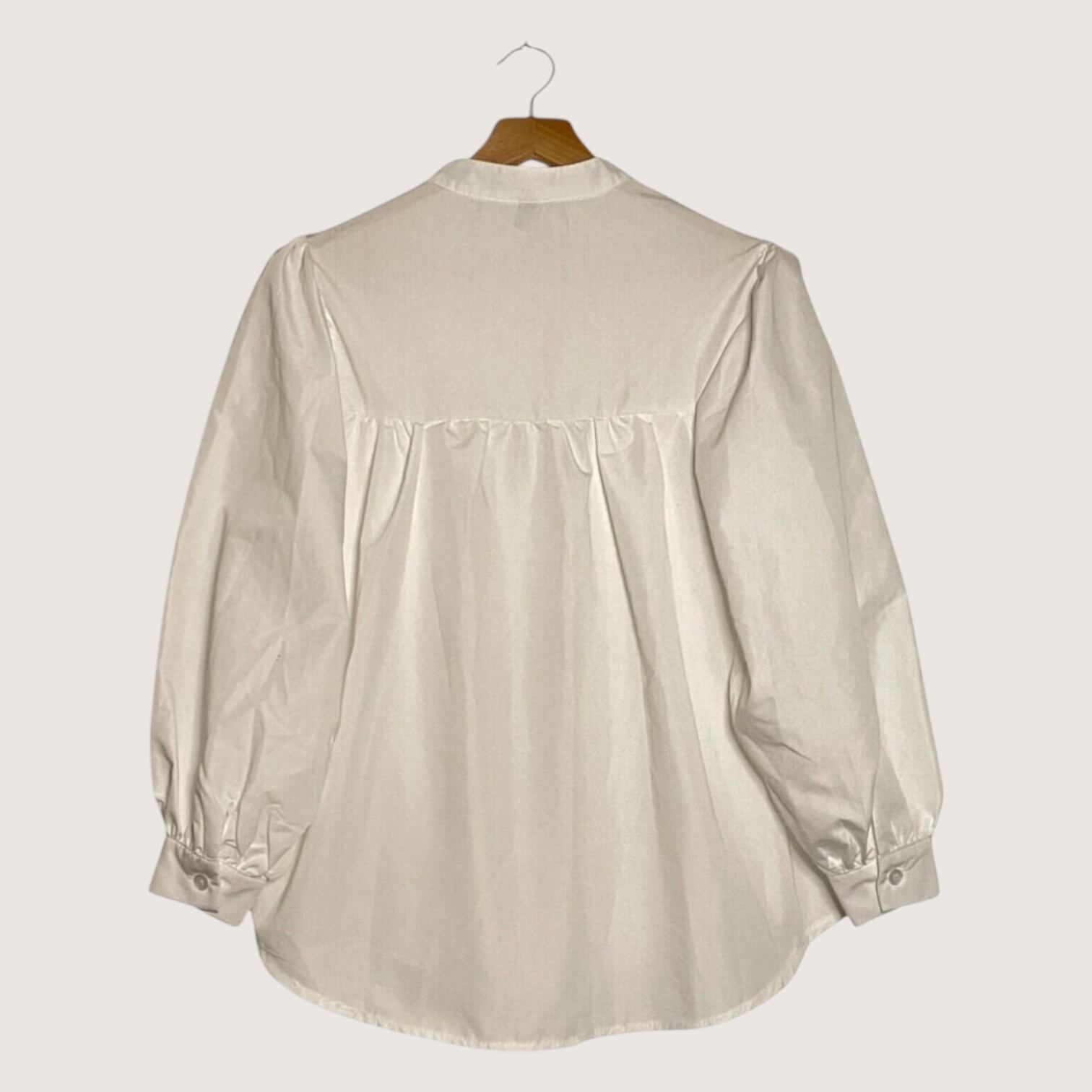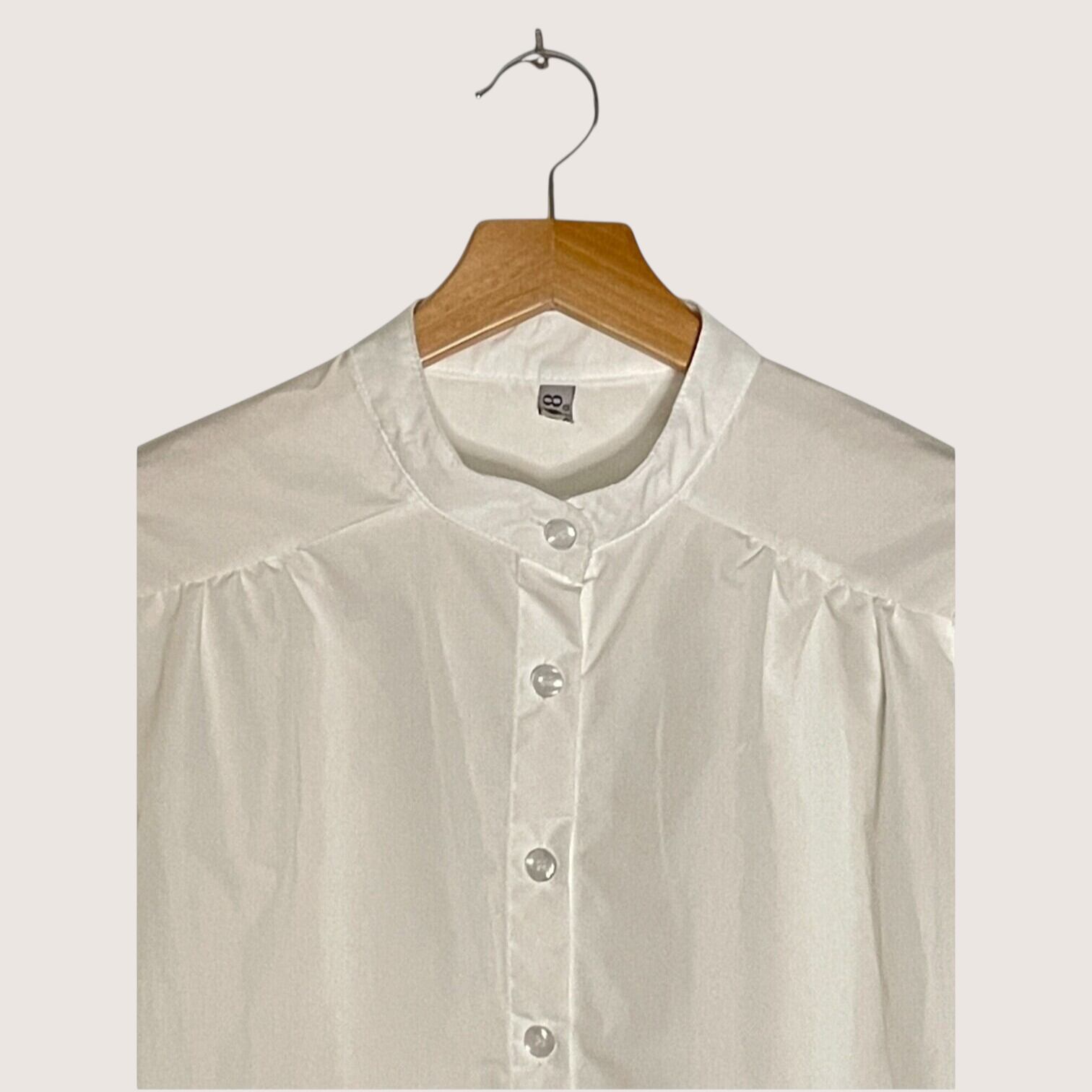 すっきりとした首元が印象的なバンドカラーシャツです。