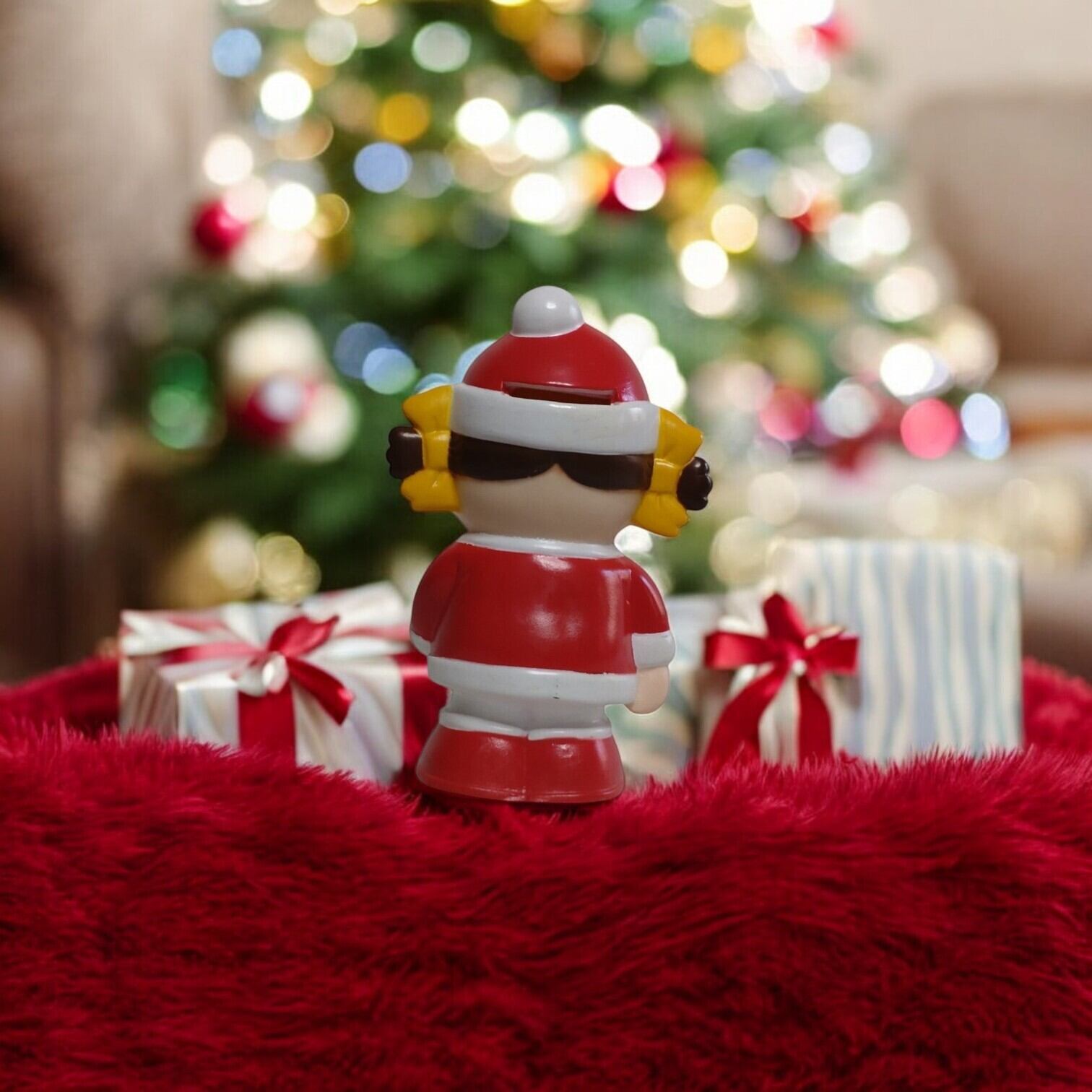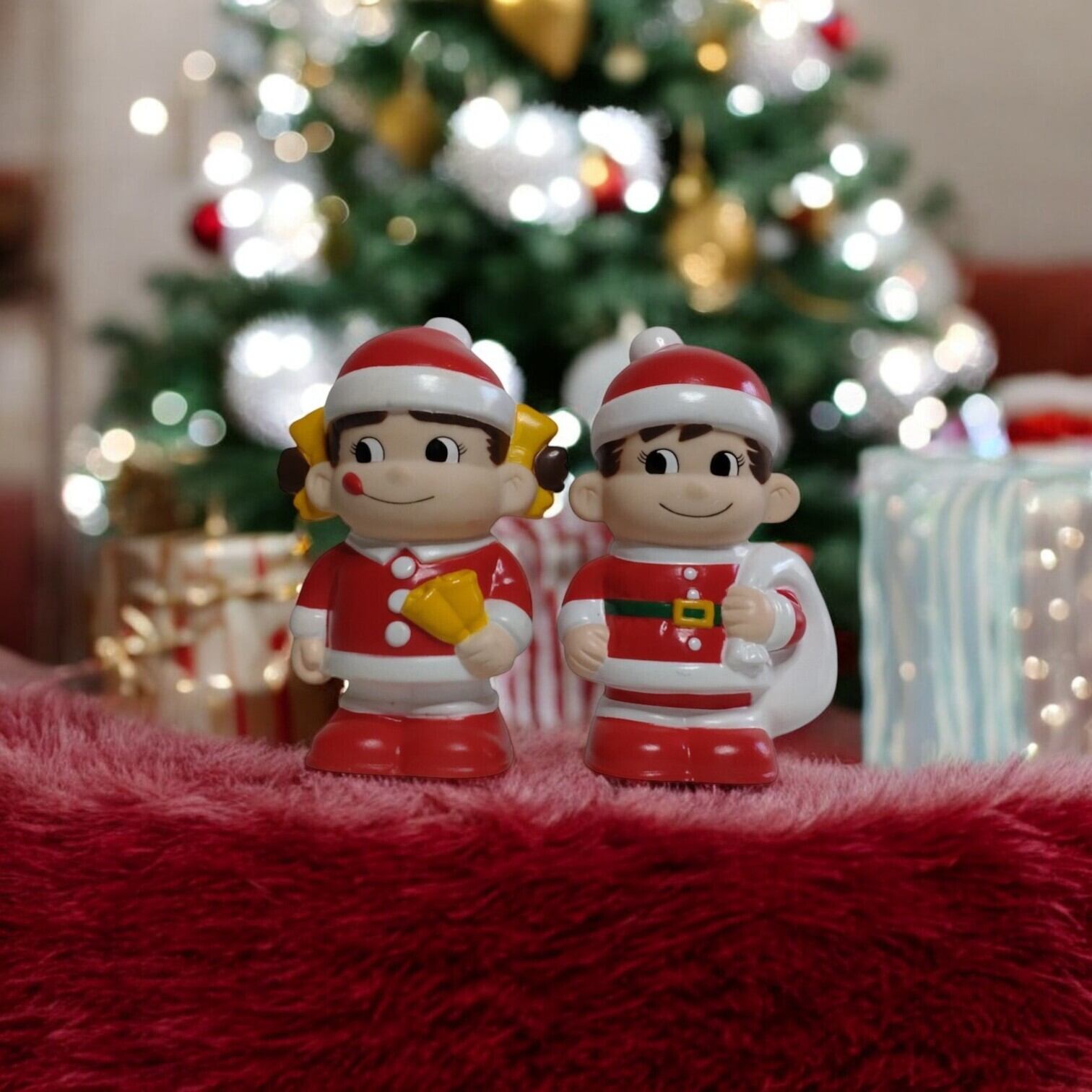 レトロな赤い衣装と丸みのあるフォルムがかわいい、サンタ姿の貯金箱2体セットです。