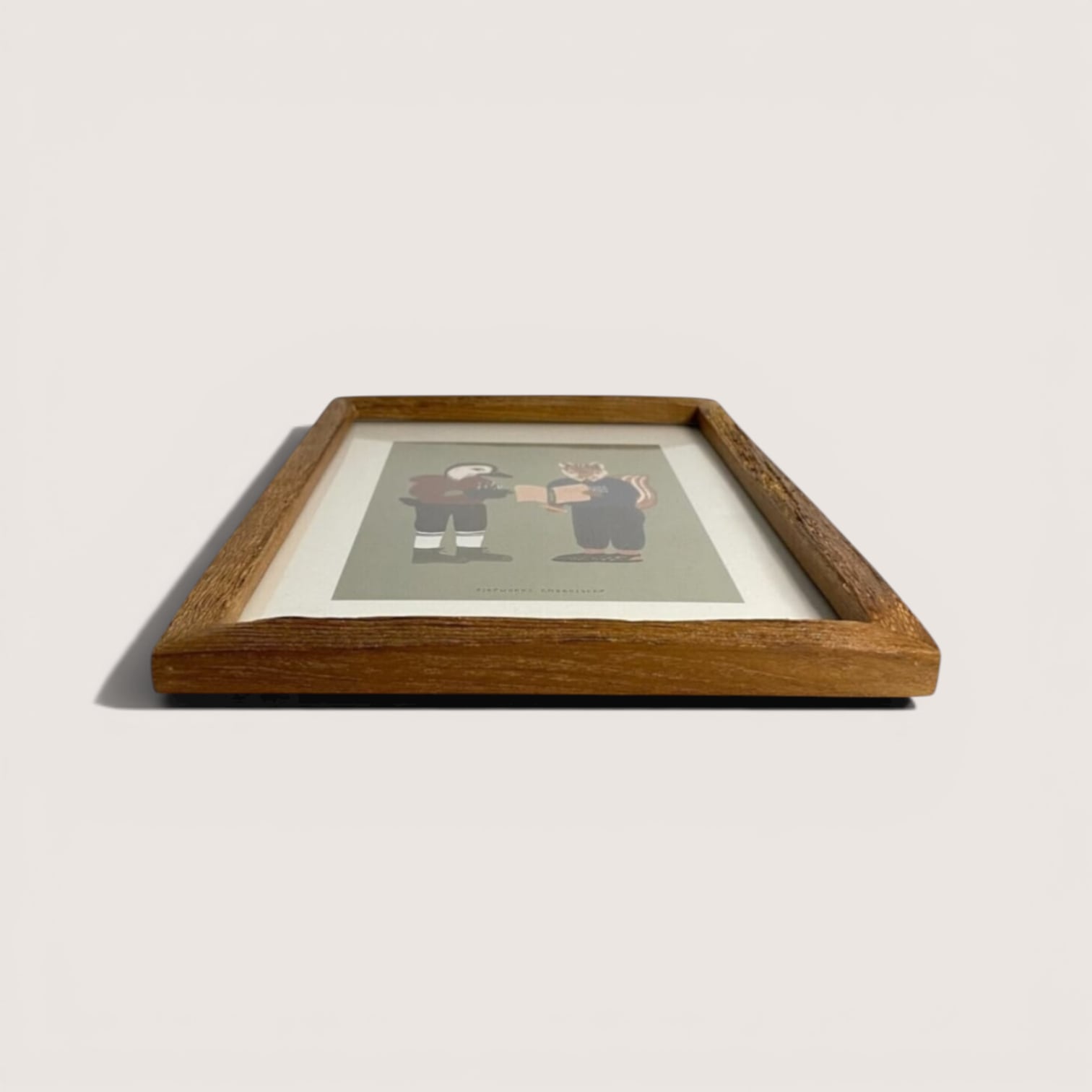木のぬくもりを感じる、絵画付きの木製フォトフレームです。